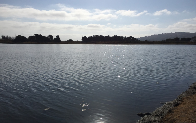 Here's a photo of an ocean / lake surface. Water at this scale reacts a little differently than water at a small scale, you can generally forget about the fact its transparent and instead deal mostly with how reflective it is.