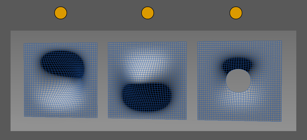 bumps inwards, the second bumps outwards, and the third bumps inward