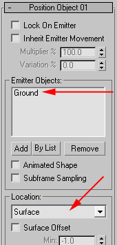 Choose your ground as your emitter object. Location is set to Surface,