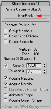 The Shape Instance we want to use is our Rock shape. If "Acquire