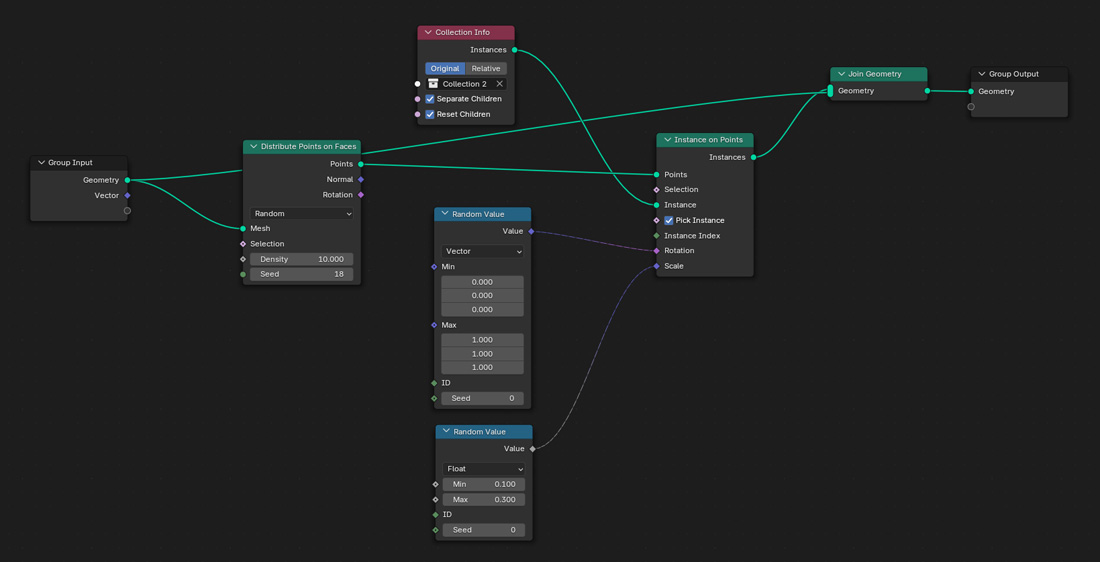 Add second “Random Value” node, keep the node on Float (keeping