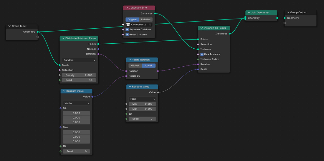Hook Distribute Points On Faces / Rotation to Rotate Rotation /