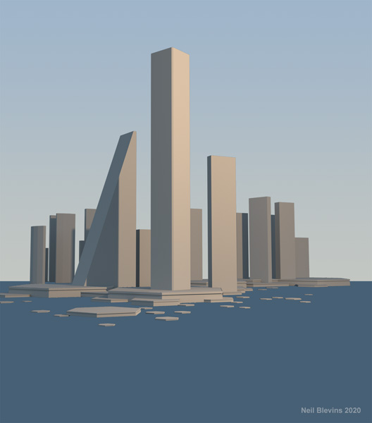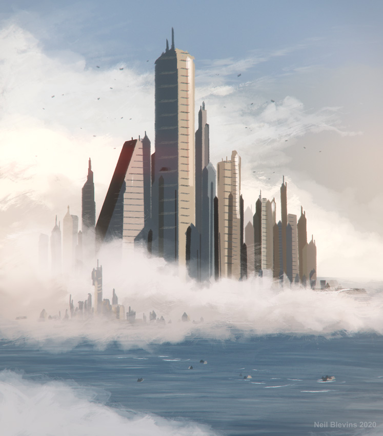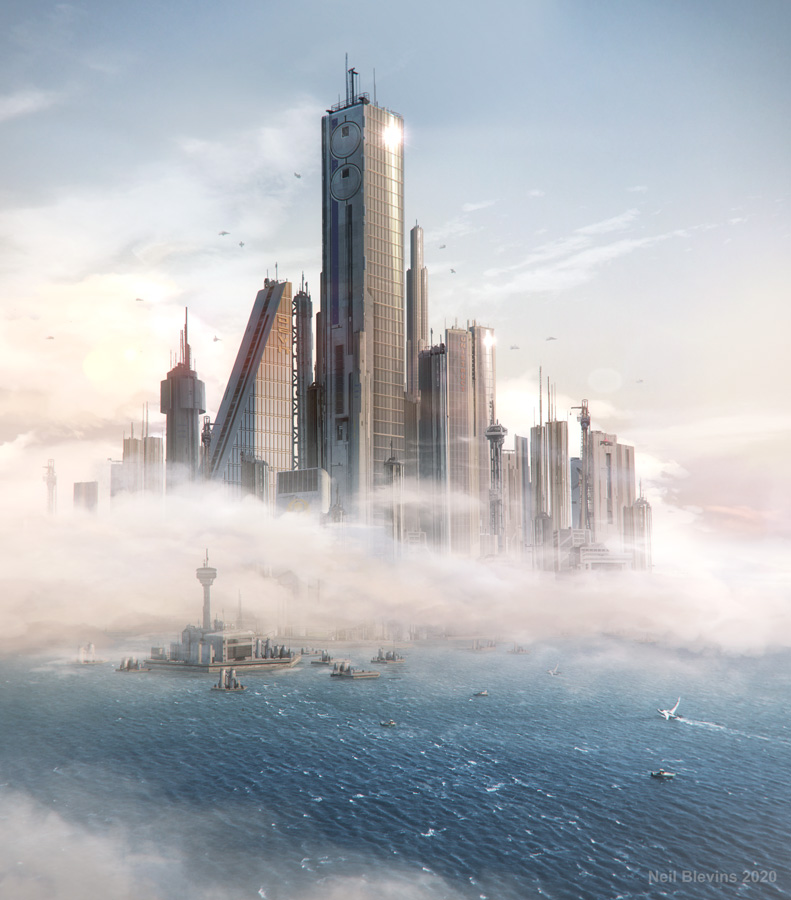For the Seastead, I collected photos of cities, buildings, cities