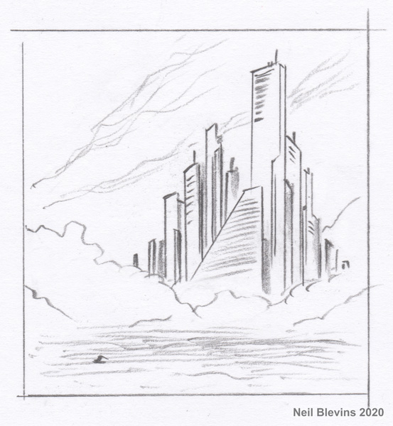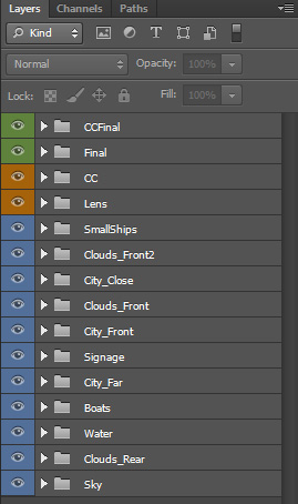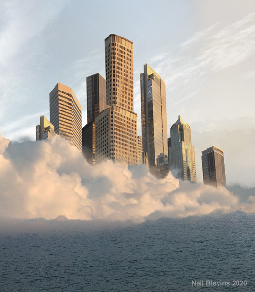 clouds, and some for the buildings. Here's a bunch of photos I layered