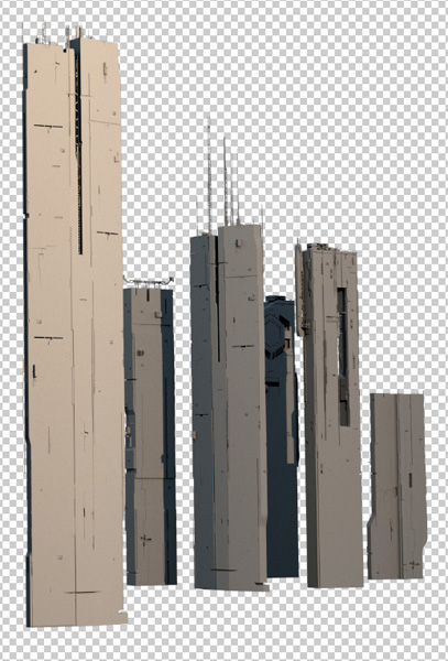 some background scifi buildings, and so used a number of building