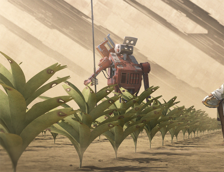 destroyed earth being all browns and the only green was the plant