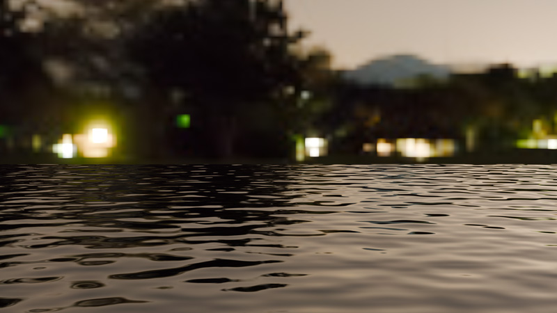 Here's a photo of an ocean / lake surface. Water at this scale reacts a little differently than water at a small scale, you can generally forget about the fact its transparent and instead deal mostly with how reflective it is.