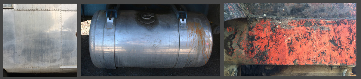 rusty and damaged, because that's how metal would look in a desert.